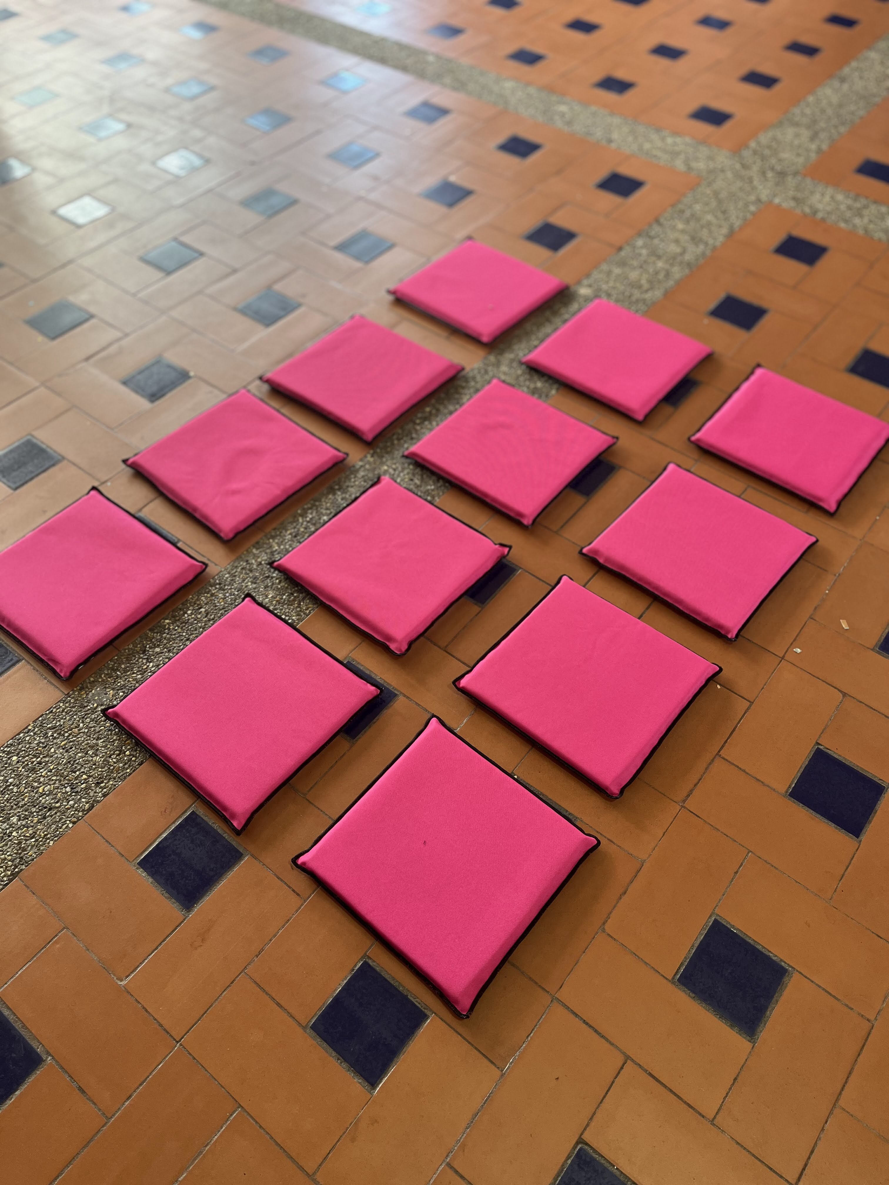 Ficha de 30 cm * 30 cm, confeccionadas en lona sublimada.